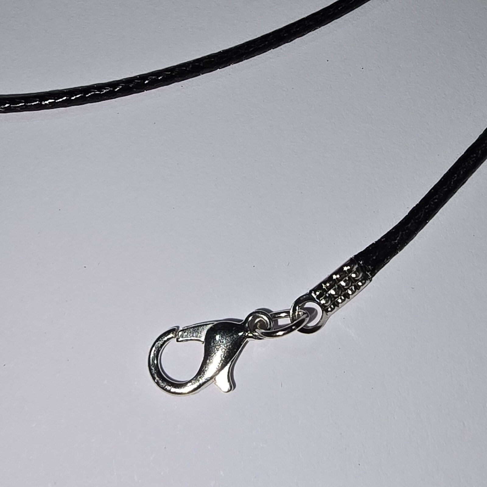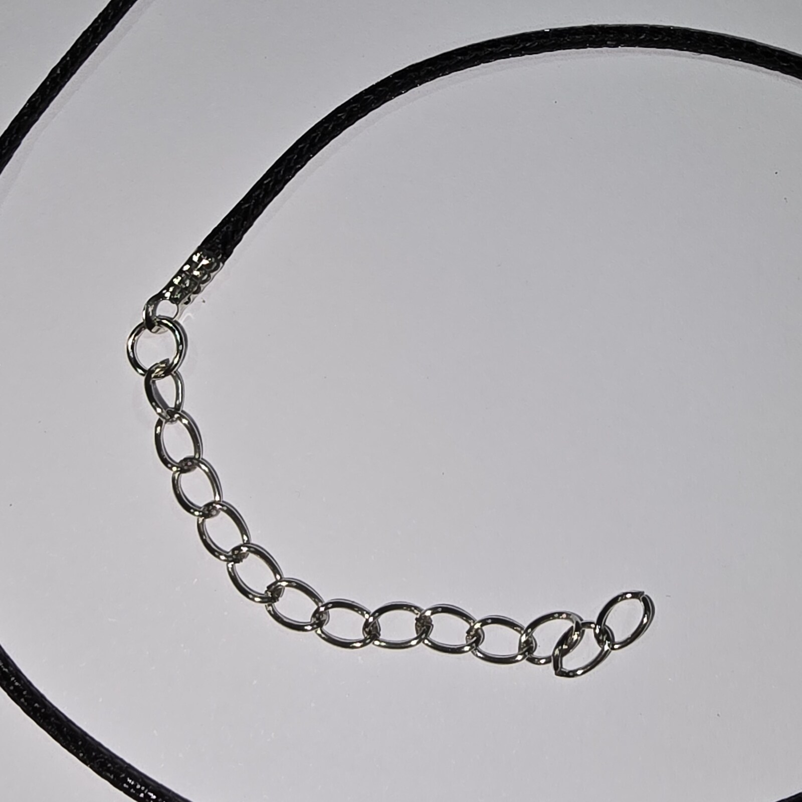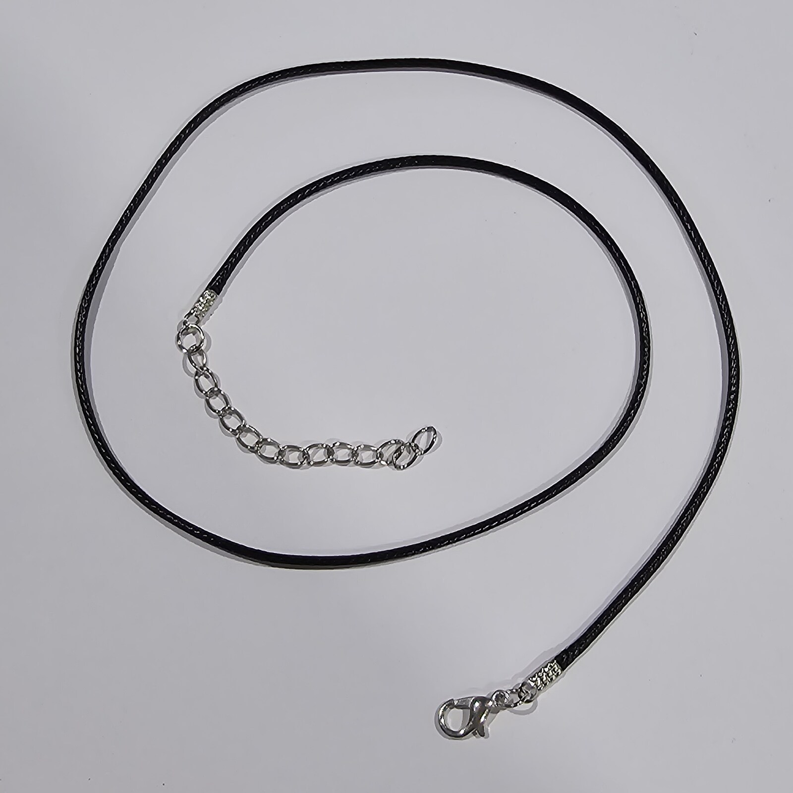 Black imitation leather cord Necklace. Length is 50cm + 5cm extension chain with clasp
