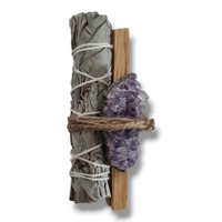 Smudge Kit with Palo Santo, Sage, and Amethyst Cluster